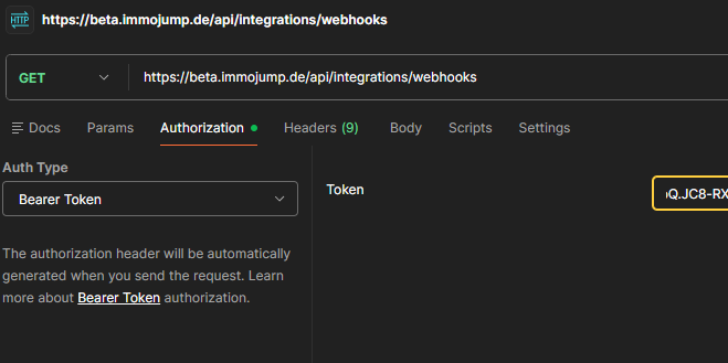 baseUrl→ z. B.https://api.immojump.detoken→ dein API-Token (als Current Value setzen)